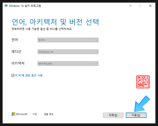 '다음'을 선택합니다