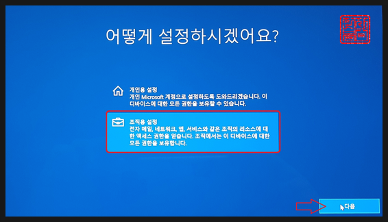 '조직용 설정'을 선택하고, '다음'을 클릭합니다.