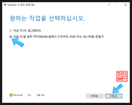 '다른 PC용 설치 미디어'를 선택합니다.