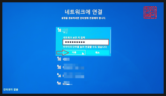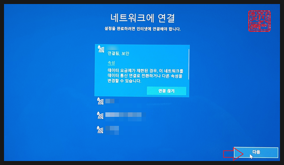 WiFi 연결이 완료되었으면, '다음'을 클릭합니다.