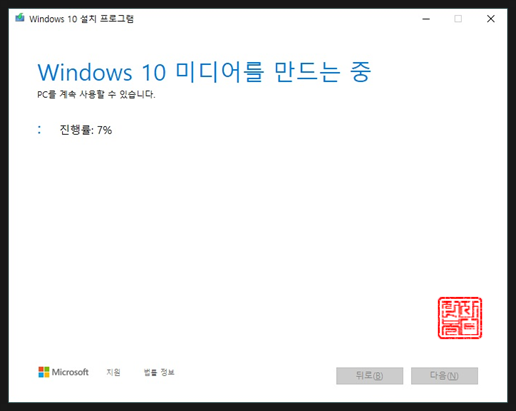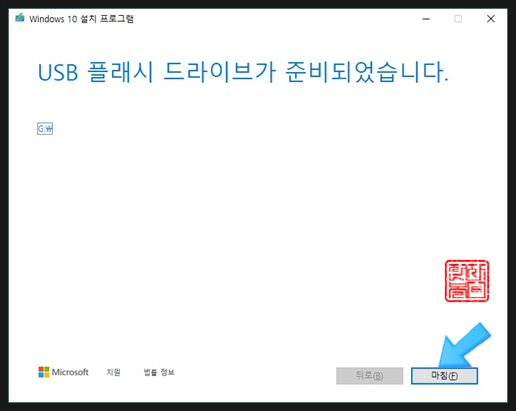 윈도우10 설치용 USB 제작 완성되었습니다.