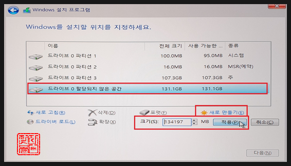 D:\ 드라이브가 131.7GB 생성되었습니다.