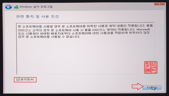 '동의'를 선택하고, '다음'을 클릭합니다.