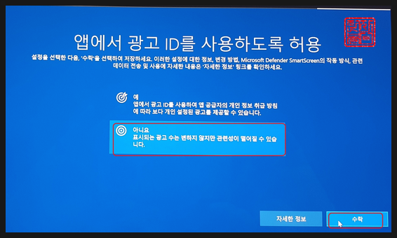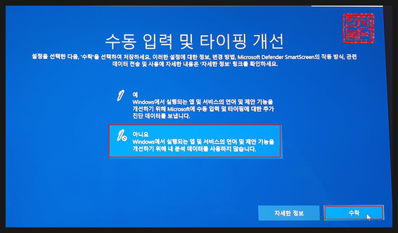 '아니오'를 선택하고, '수락'을 클릭합니다.