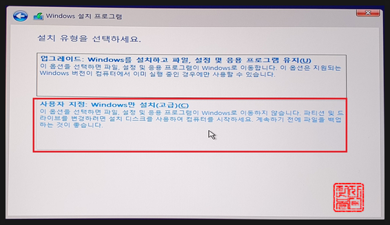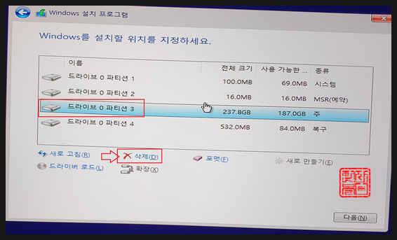새로 구매한 PC의 경우는 상관이 없지만, 기존에 사용하던 컴퓨터의 OS를 재설치하는 경우라면 지워야 할 파티션과 지우지 말아야 할 파티션을 인지하고 진행하셔야 합니다.