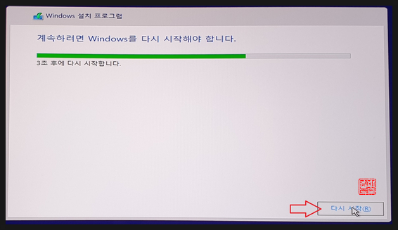 컴퓨터가 재부팅되었습니다.