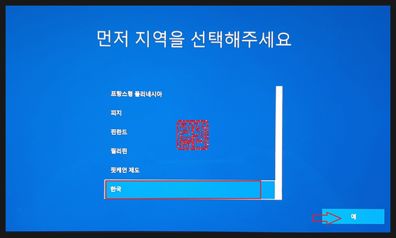 '한국'을 선택하고, '예'를 클릭합니다.